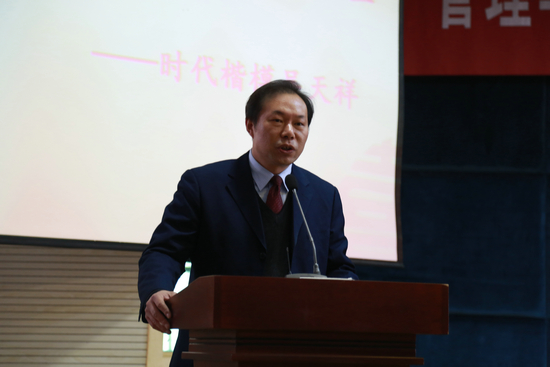 图为吴天祥为管理学院师生做讲座 摄影:王诚焱