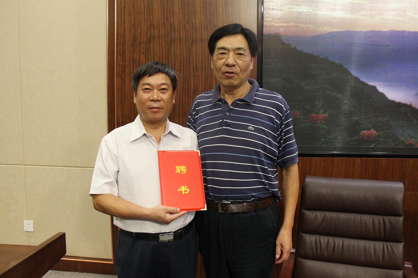 卢炎生副校长(右)为穆宏强总工程师(左)颁发聘书 摄影:徐凯