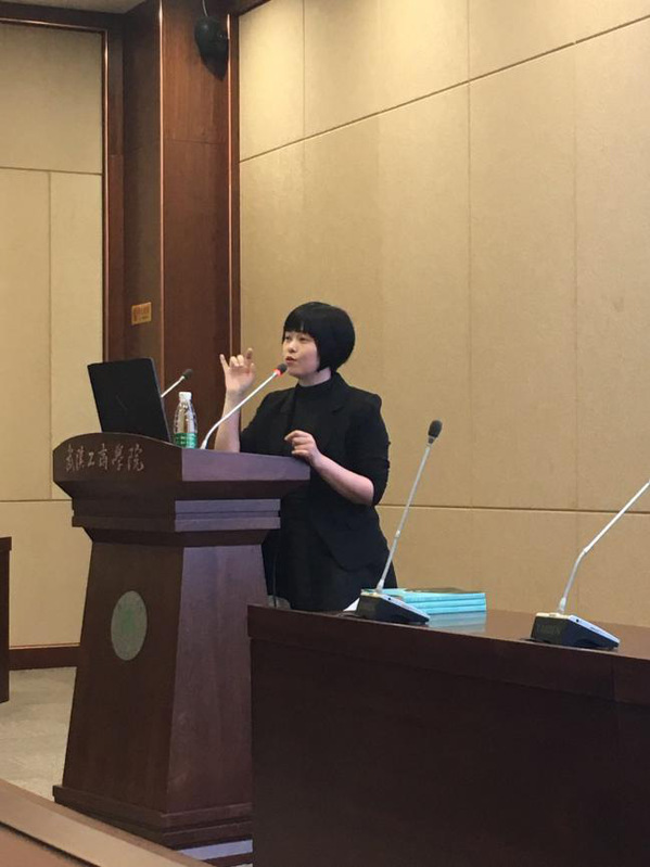 毛明结合自己的人生经历向大家分享了设计经验,并展示了她的设计作品案例。作为一名身兼高校教师和企业创始人双重身份的设计师,她告诫同学们,不要一毕业就急着去创业,可以先积累经验,再去创业也不晚。“遇到擅长又喜欢的职业,就一定要坚持下去”。毛明老师还为女设计师们发声和点赞:“她们不仅要承担家庭责任,兼顾职业与兴趣,还要担负男性设计师不可想象的压力和各种挑战。”她还谈道,创意无边界,跨界、大世界、界限、境界、心界、新世界都属于创意的界,而创意的灵魂在于“众生平等,和而不同”。