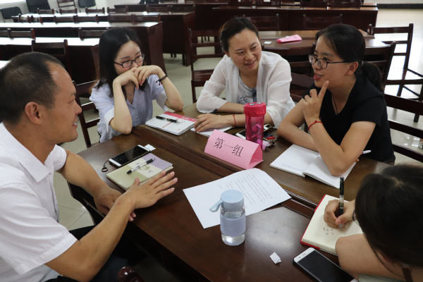 本次团辅活动分两期举行,第一期的活动主题是“自我探索”,将老师们分成若干小组,让大家了解自己及彼此。只见活动现场,张培在舒缓的音乐中带领大家进行想象,想象自己十年后的个人状态及工作情况,然后从80张卡牌中去挑选出两张,一张代表过去和现在的自己,另一张代表将来的自己,小组内进行分享与提问,深入探究自我内心的投射。