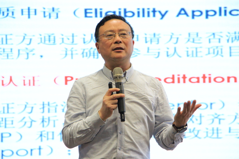 熊蕊教授就《认证/论证向我们走来——基于OBE的教学设计》主题,分别围绕“认证向我们走来”“基于OBE的教学顶层设计”“借分析案例学习其他学校的创新意识”三方面做了详细介绍。她谈到,认证不是被动要求的,而是帮助高校提升办学实力和专业竞争力的标准,是高校的自身需求,大家应主动迎接认证,不断提升学校竞争力和专业生存力。谈及专业认证的教学设计,熊蕊教授表示,网络时代的资源唾手可得,以往的“讲”课不再吸引学生,学生需要更多的学习动力,这便对今天的教学设计与课程内容提出了挑战。为此,熊蕊教授提出了教学设计上的七个转变,即将教学重心转向以学生为中心,开展质量标准建设、资源建设、实践教学改革、大学生创新能力培养、教师业务水平和教学能力的提高、教育信息化和高校教学战略研究。她说:“老师们应加强再认识和再学习,把自己当成专业负责人、教务处处长去看待认证,把自己当成大师来看待。”