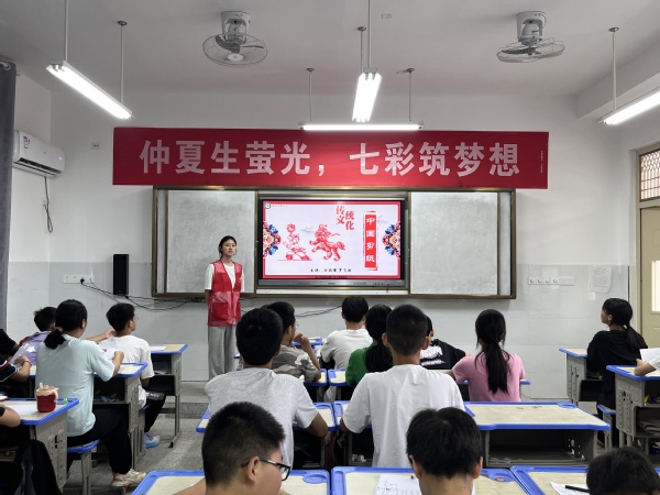 在潜江龙湾镇小学,“晨曦之光”志愿服务队为孩子们上了一堂主题为“新时代的长征路”的课程,引导孩子们传承红色基因,树立远大理想。在十堰谭山镇中学,该校“萤火虫之光”志愿服务队于“七七事变”86周年之际为当地46名中学生上了一堂党史课,讲述“卢沟桥事变”及中华民族顽强抗战的历史,激发孩子们不忘国耻、保家卫国的爱国之情。