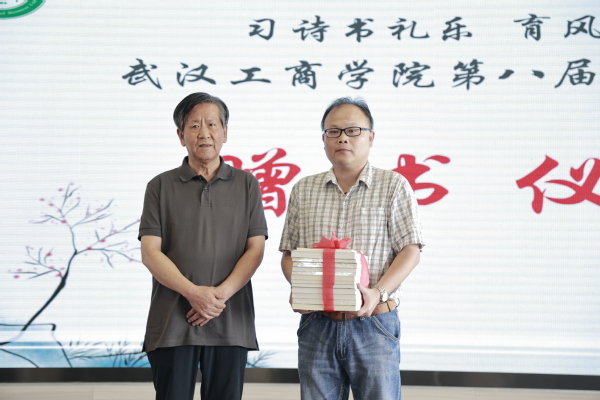 图为王三堂常务副会长向学校赠送个人学术著作 摄影:杨小婷