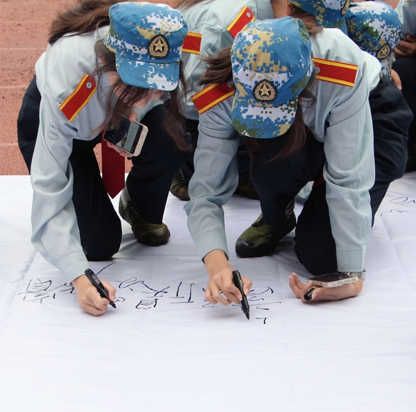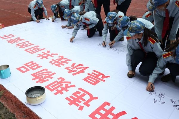 图为全体学生一起签订《寝室安全承诺书》 摄影:吴若希
