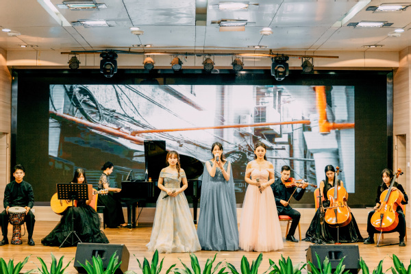 一曲小提琴演奏《蒹葭》拉开了本次晚会的序幕,艺术家和师生们通过钢琴协奏曲、小提琴协奏曲、混声合唱等多种艺术形式,倾情演绎了《春江花月夜》《皮黄》《梁山伯与祝英台》等14首大众耳熟能详的民族乐曲和经典乐曲,极富感染力的旋律和歌声让观众们仿佛沉浸在音乐的海洋。