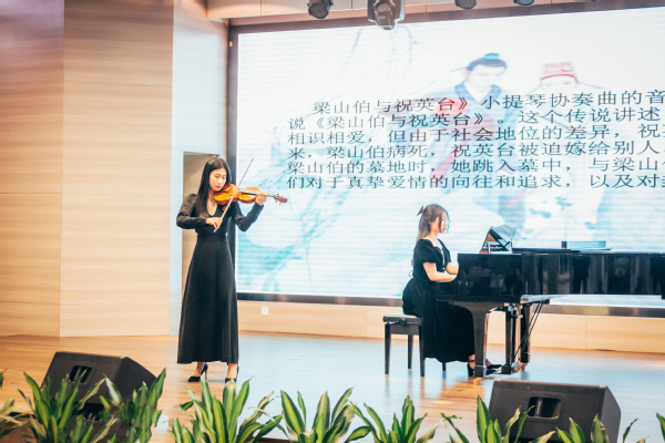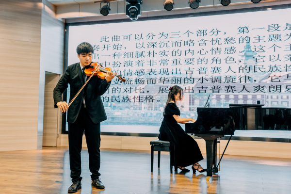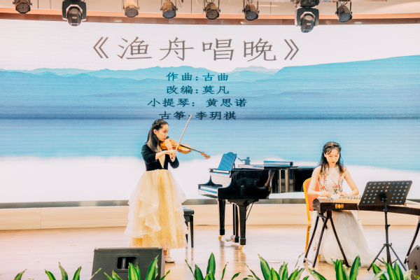 一曲深浸着西方文化精髓的小提琴和饱含中国民族传统精髓的古筝一起演奏的《渔舟唱晚》更是将音乐会推向了高潮,带领观众一起领略中西方音乐的奇妙交融,感受不同文化的碰撞火花。