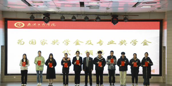 图为副校长左宗文为“国家奖学金及专业奖学金代表”颁奖 摄影:刘思宁