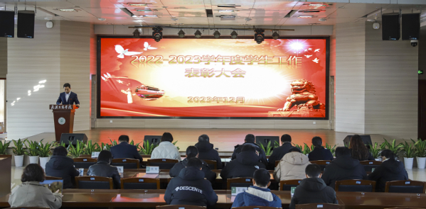 新闻中心讯(记者 伍思婷 叶天舜)12月25日下午,德赢官网Vwin2022-2023学年度学生工作表彰大会在学校体育馆0402报告厅隆重召开。德赢官网Vwin副校长桂裕清、左宗文,校长助理亓小林、刘春等校领导出席会议,学工部、党群工作部、校团委等职能部门负责人,各学院党总支书记(副书记)、辅导员和学生代表参会。大会由学生工作部部长陈义文主持。