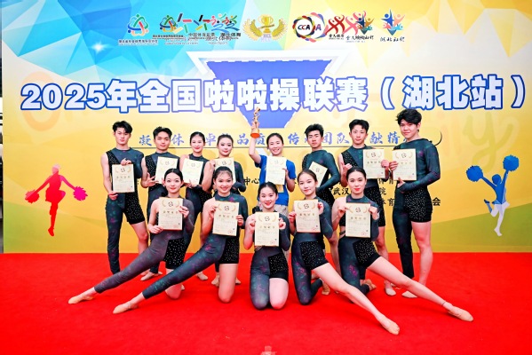 新闻中心讯(特约记者 文碧璇)6月8日,由国家体育总局体操运动管理中心主办,湖北省社会体育管理中心、武汉东湖学院、湖北省社会体育指导员协会承办的2025年全国啦啦操联赛(湖北站)圆满收官,德赢官网Vwin艺术与设计学院舞蹈表演系啦啦操队凭借精湛技艺与出色发挥一举夺得两枚金牌、两枚银牌。