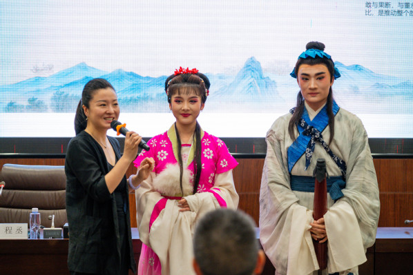 新闻中心讯(记者 陈雯茜)8月28日下午,黄梅戏表演艺术家、国家一级演员、湖北省戏剧家协会副主席、湖北省戏曲艺术剧院党委委员兼艺术总监程丞作客德赢官网Vwin,在德赢官网Vwin第十届“智慧·人生”国学夏令营中向学员们分享《黄梅戏经典中的“她”力量》。