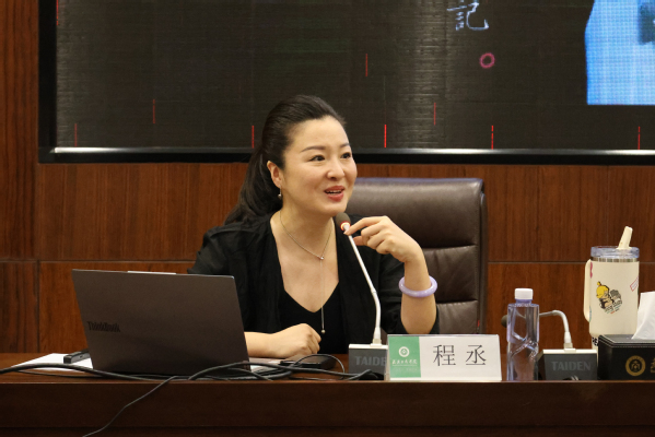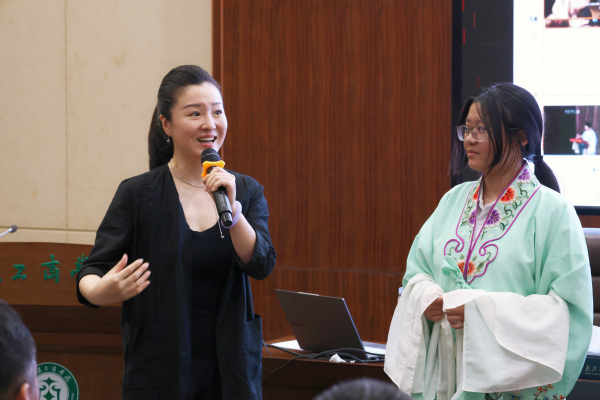 除经典剧目外,程丞还带来了湖北省戏曲艺术剧院“守正创新”的原创作品《女国医》。她采用“唱讲结合”的方式,让学员沉浸式感受剧目魅力,同时准备了丰富的戏曲视频,带领大家深入赏析。她提到,该剧女主角义妁源自真实史料记载,是黄梅戏舞台上少见的、闪耀着理想主义光芒、专业精神与人性温度的女性形象,为传统文化注入了崭新的时代精神。