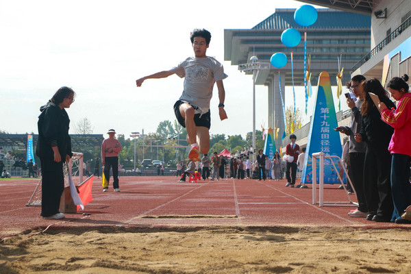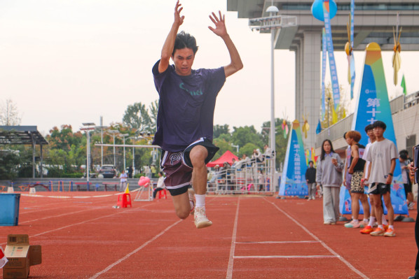 国际教育学院的学生郑余豪在男子跳远比赛中跳出5.48米的出色成绩,将第一名收入囊中,虽然他其中一跳因违规被判无效,却依旧以平常心面对。他的赛后感悟道出了众多运动员的心声:“我认为全力以赴的比赛过程比结果更有分量,无论输赢,这段经历都弥足珍贵!”