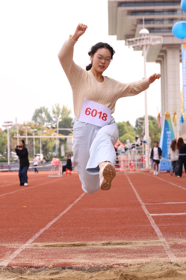 田赛区域同样看点十足。应用技术学院2024级市场营销专业学生韦莫嘉在女子跳高中荣获第一。“我高中时期就参加过跳高比赛,一直对跳高项目很感兴趣。”她分享道。