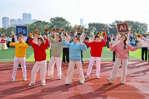 其中,国际教育学院方队中9名来自马来西亚、伊拉克、利比里亚等国家的留学生格外吸睛,他们以一段热情四射的啦啦操表演,为运动会增添了国际色彩和多元文化交流。来自加蓬的留学生辛德拉在采访中开心地表示:“The performance at the opening ceremony of this sports event was very interesting. And I also found it very enjoyable to make new friends.(这次运动会开幕式的表演非常有趣,并且我觉得能结识新的朋友非常有意思)”