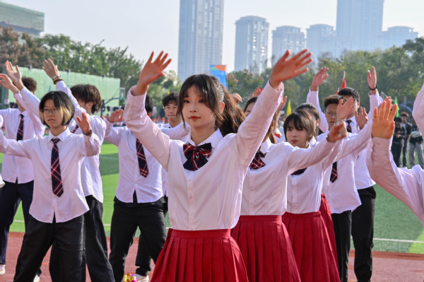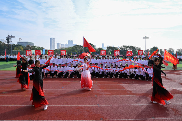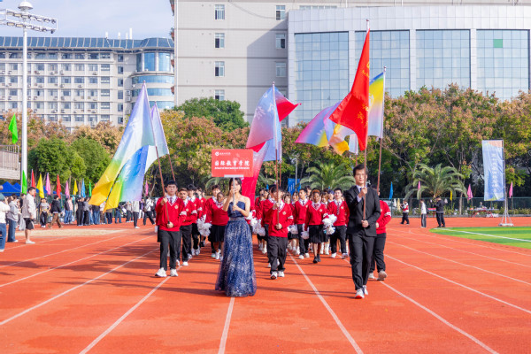 詹河焰致开幕辞。他向为本届运动会付出辛勤努力的全体工作人员、教练员、裁判员以及积极参与的运动员们表示衷心感谢和亲切问候。他指出,学校始终坚持立德树人根本任务,持续构建“五育并举”育人体系,体育教育成果显著,先后荣获多项国家级和省级荣誉,并在舞龙舞狮、啦啦操、篮球等领域屡创佳绩,充分展现了学校体育工作的高质量发展。
