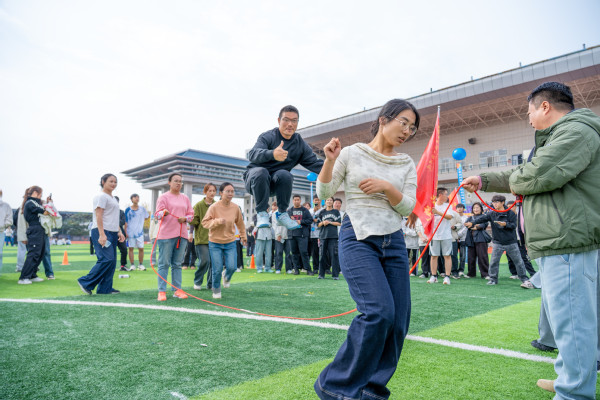 文法学院团队负责人吴琼老师在集体跳绳夺冠后开心地说:“感谢学校组织的趣味运动会,让大家在工作之余放松身心、增进情谊!我们集体跳绳项目从去年第二名到这次成功取得了第一名,是团队默契与共同努力的结果。我们在赛前便一直反复练习找节奏、相互鼓励,比赛中虽有点紧张和小失误,但快乐远比名次更珍贵,和大家一起运动的过程超棒!”