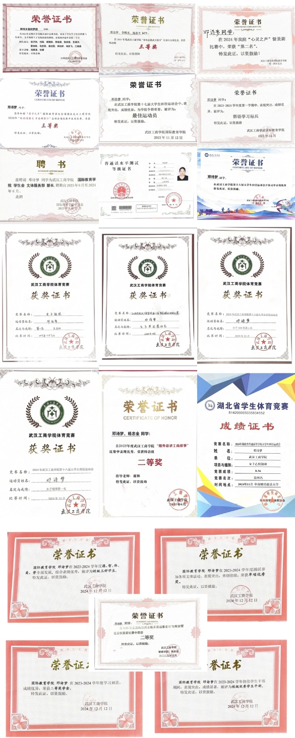 图为邓诗梦所获荣誉