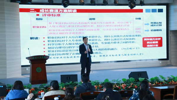 讲座中,赵北平着重强调了选手备战能力提升与指导教师作用发挥的重要性。他指出,学生若想在职业规划大赛中取得优异成绩,自身不仅要扎实掌握职业规划相关知识、具备良好的表达能力,指导教师的专业指导更是关键一环,从赛事材料打磨到现场表现优化,指导教师的悉心点拨能为选手参赛保驾护航。