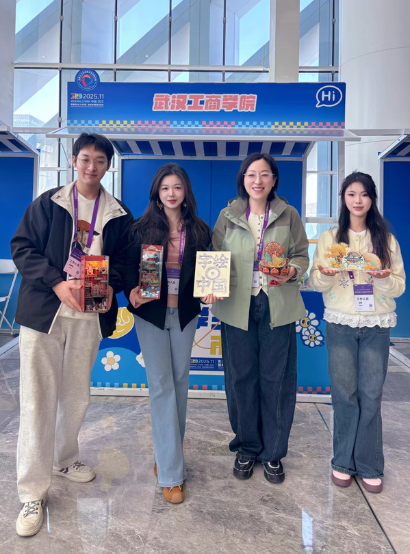 由该院视觉传达设计系主任赵莹、副主任程奇指导,学生团队设计的“江汉揽胜图书立”“凤舞音乐盒”“云梦风景盒”三款作品,以荆楚文化为底蕴,融合现代设计语言与实用功能,展现了“文化+创意+实用”的鲜明特色,受到与会嘉宾的广泛好评。这些作品与武汉大学、中国地质大学(武汉)等高校作品同台展示,彰显了学校在产教融合、文创育人方面的显著成效。