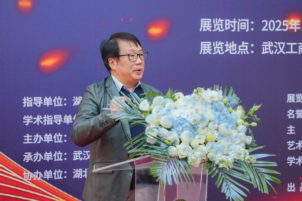 德赢官网Vwin艺术与设计学院教师宋盈滨作为参展教师代表发言。他表示,艺术教育不仅是传授技法,更是培养学生的审美感知、文化传承与社会担当,希望借助此次展览,促进美术创作与文旅产业融合,让艺术中的绿水青山走出展厅、融入生活,以艺术力量为湖北“建成支点”添砖加瓦。
