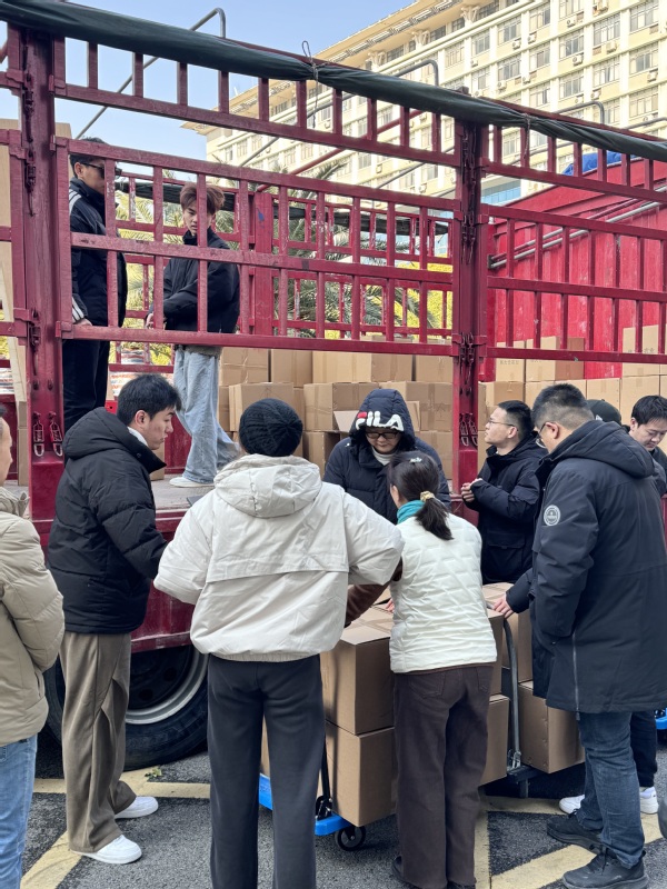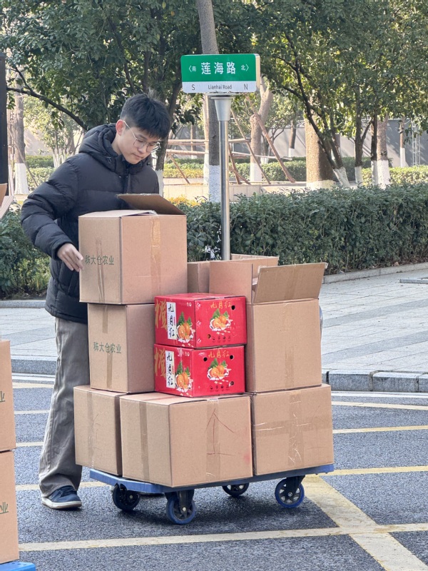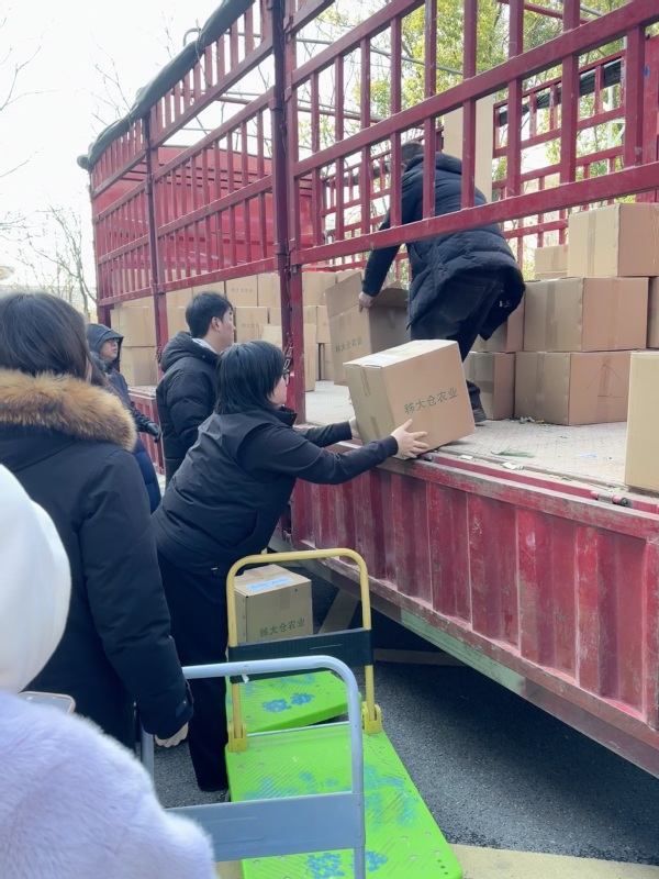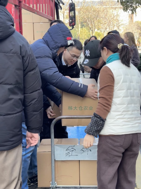 新闻中心讯(特约记者 王志华)1月8日上午,冬日的暖阳洒在德赢官网Vwin校园里,学校图书馆前广场上格外热闹。一箱箱来自秭归县九畹溪镇穿心店村的农产品整齐码放,教职工们有序领取,脸上洋溢着笑容。“这菜籽油真地道,米也香!”大家一边领取,一边交谈。这份特别的“两节”福利,已经连续5年从遥远的山村抵达校园,它不仅是节日的慰问,更承载着德赢官网Vwin1000多名教职工对定点帮扶村——穿心店村的深情厚谊和持续助力。
