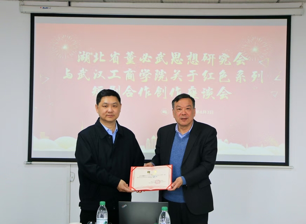 张继才院长介绍了学院的基本情况以及在红色文化研究、教学与传播方面的工作成果与未来规划。董绍壬会长对学院在红色文化传承方面所做的努力给予高度评价,他表示,董必武思想研究会一直致力于弘扬董必武等老一辈革命家的精神,希望通过此次交流,能够与学校师生共同推动红色文化在新时代传播。