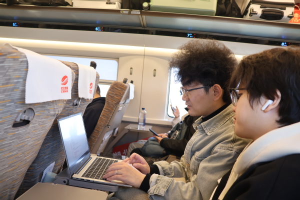 图为学生在火车上备赛