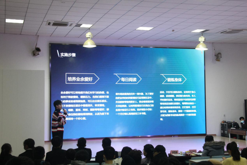 通过有序地组织,演讲正式开始。在讲话的过程中,他们激情昂扬,12位参赛选手先后上台作出六分钟演讲。在展示自我职业规划的过程中,选手们首先进行了自我介绍,然后通过对职业环境的分析、对自我认知的分析后确定目标职业,并为此制定了对于自己具体短、长期目标并对应计划实施,皆为对未来的未料之数作出的应变计划调整。
