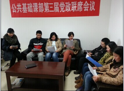 新学期伊始,公共基础课部在校党委的领导下,以“正风、正气、聚人心”为主题,认真开展党风校风建设:一是召开了课部成立以来第三次党政联席会议。会议上听取了领导及教研室负责人对上一学期所管辖范围内各项工作的深刻总结,学习了校“两代会”重要文件,发起了如何在课部内开展深化改革,并以深化改革为契机推动课部各项事业发展等问题的思考并展开热烈讨论,提出的多项提案将由课部委员会讨论后逐步实施。二是课部教师分小组学习讨论反对四风;加强党风、校风廉政建设;自始至终提醒自己要着眼于自我净化、自我完善、自我革新、自我提高。从而提高工作效率,保障基础教学。三是关心师生生活,通过走访学生宿舍和清真食堂,回访老教师等,传递正能量,达到了凝聚人心的效果。