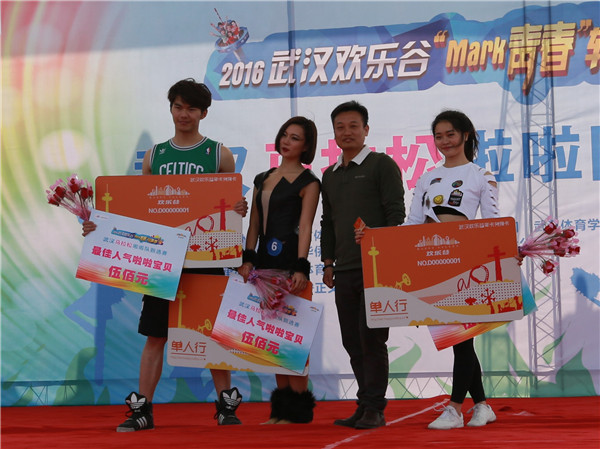 活动当天,来自8大高校参赛的队伍用充满活力的舞蹈在武汉欢乐谷里掀起了一股青春风暴。拉拉队员们在舞台上用肢体语言演绎着体育的魅力,靓丽的造型和劲爆的舞姿迎来了场下的观众掌声不断。团体赛中,德赢官网Vwin拉拉队凭借美观的舞蹈编排和团队的默契配合,得到评委们的一致称赞,最终获得团体赛第2名和“最佳人气团队奖”,与武汉体育学院Bad guys、Forever sixteen、Cheer、武汉科技大学Lucky guys队、湖北交通职业技术学院美少女战士、武汉职业技术学院Fire和湖北经济学院Amazing队一起将在武汉马拉松途中8个站点上为跑友舞动呐喊的拉拉队。在个人赛中,德赢官网Vwin拉拉队队员何芮带来的热辣的舞蹈瞬间点燃全场,最终与来自武汉体育学院的李昕姝、李楚穗一起获得前三名的好成绩。