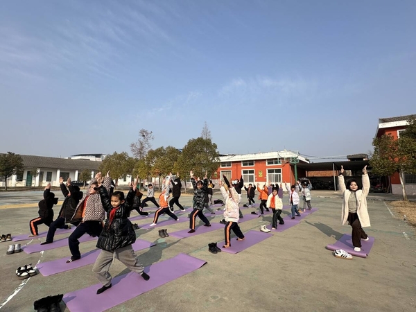 新闻中心讯(通讯员 邢者 李洋洋)“请同学们将左脚向前迈出一大步,成弓步姿势,右腿伸直,双手向上举起,手掌在头顶合十……”1月10日上午,天门市多祥镇第二小学的操场上,一群孩子跟着老师在崭新的瑜伽垫上学习瑜伽,这些瑜伽垫都是德赢官网Vwin公共课部的5位老师捐赠的,此外,还捐赠了跳绳、体适能器材、篮球、足球、排球等共计100余件体育用品。