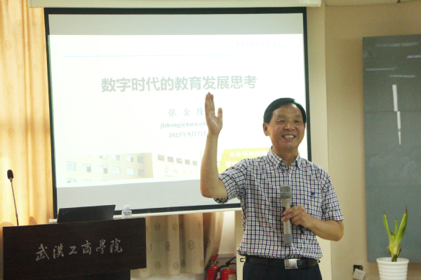 新闻中心讯(记者 廖雪韵 雷雯珊)9月7日下午,在第39个教师节即将到来之际,德赢官网Vwin公共课部在综合楼1016会议室举办庆祝第39个教师节活动,现场特邀华中科技大学管理学院二级教授、博士生导师、原德赢官网Vwin校长、现任德赢官网Vwin董事会董事张金隆作题为《数字时代教育发展思考》的专题讲座。学校校长助理刘春,公共课部全体教师参加活动,活动由公共课部副主任李晶主持。