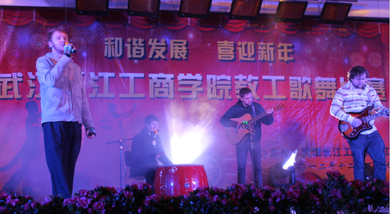 (特约记者 戴雪飞)12月27日下午,国际教育学院的外教们参加了我校教职工歌舞比赛,他们和中国的老师们一起载歌载舞,迎接中国新年的到来,现场气氛十分热烈。