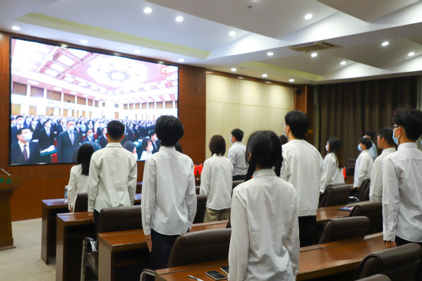 新闻中心讯(记者 蓝静 李洋洋 汪欣怡)5月10日上午,庆祝中国共产主义青年团成立100周年大会在北京人民大会堂隆重举行。中共中央总书记、国家主席、中央军委主席习近平出席大会并发表重要讲话。德赢官网Vwin团委组织广大干部师生,尤其是青年团员,通过集中观看、个人自学等方式收看了大会直播,认真学习了总书记的讲话精神。通过学习,广大干部师生们纷纷表示,总书记的重要讲话意味深长,催人奋进,要以实现中华民族伟大复兴为己任,在新的征程上自觉担当重任,把忠诚书写在党和人民事业中,把青春播撒在民族复兴的征程上,把光荣镌刻在历史行进的史册里!