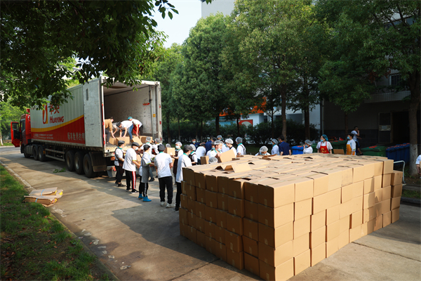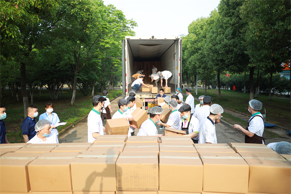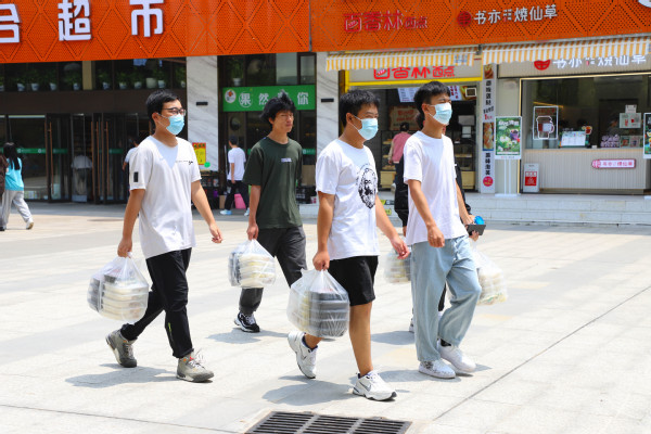 为了确保现场秩序井然并符合防疫要求,1.8万份校庆餐分时段分批发放。食堂共设置了42个学生窗口、3个教职工窗口供广大师生领取,所有学生以班级为单位按照固定时间分批到食堂固定窗口领取,教职工凭餐券到食堂指定窗口领取。学校学生工作部还招募了320名师生志愿者,帮忙打包和分发校庆餐。