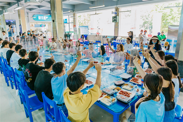 图为学生们在食堂开心地品尝校庆餐 摄影:佳航