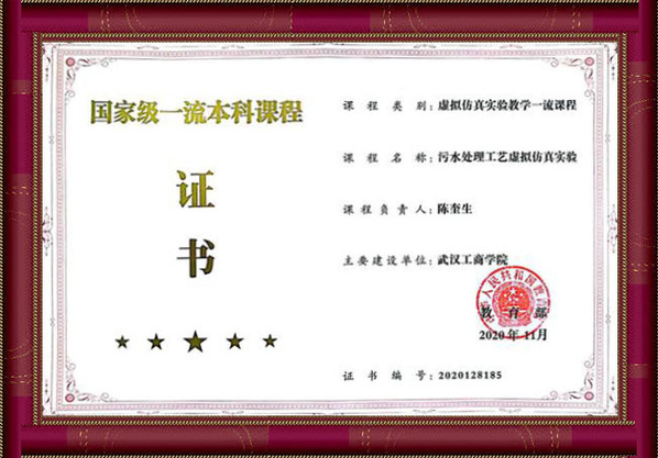 《污水处理工艺虚拟仿真实验》于2020年11月被教育部认定为国家级虚拟仿真实验教学一流课程。该课程秉承以能力为先的人才培养理念,适应教育信息化大趋势,通过校企合作开发了污水处理工艺虚拟仿真实验,有效解决此类复杂实验无法开设的难题,采用虚拟仿真技术使条件不具备、不允许、做不到、做不了的实验项目变为现实,促进了多学科知识交叉融合,可有力提升学生的综合设计能力与工程实践能力,显著提高大学生创新能力培养水平。