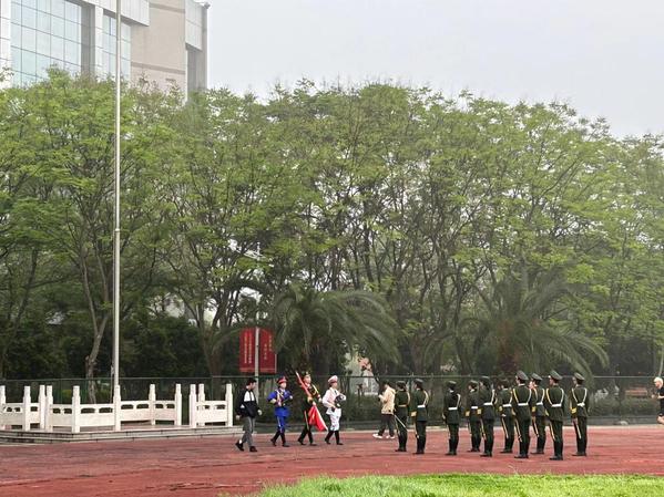 2024年4月15日上午7点,环生学院全体政工老师、23级全体学生、院学生会干部、学生党支部入党积极分子及学生(预备)党员共计400余人,参加了学校校团委组织的第八周升旗仪式。