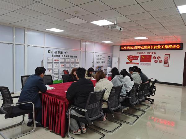 为促进2025届毕业生就业工作的有序开展,2025年3月11日上午,环生学院党总支召集2025届毕业班班长在综合楼1118会议室召开了就业工作座谈会。环生学院党总支副书记王强、2025届毕业班辅导员杨洪影及毕业班全体班长参加了此次会议。