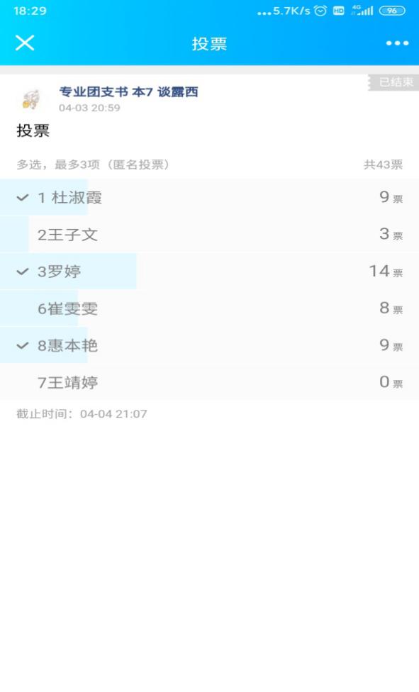 为了顺利开展五四评优工作,组织学生在线上开展五四评优工作。通过线上网络投票,选举出12名优秀团员3名优秀团干。为了做好学生工作,组织学生积极开展线上班团会工作。召开了“劳动主题团会”、“停学不停课—线上学习班会”,学生分小组在线上展示,让疫情期间的同学们变成 “零距离”交流。