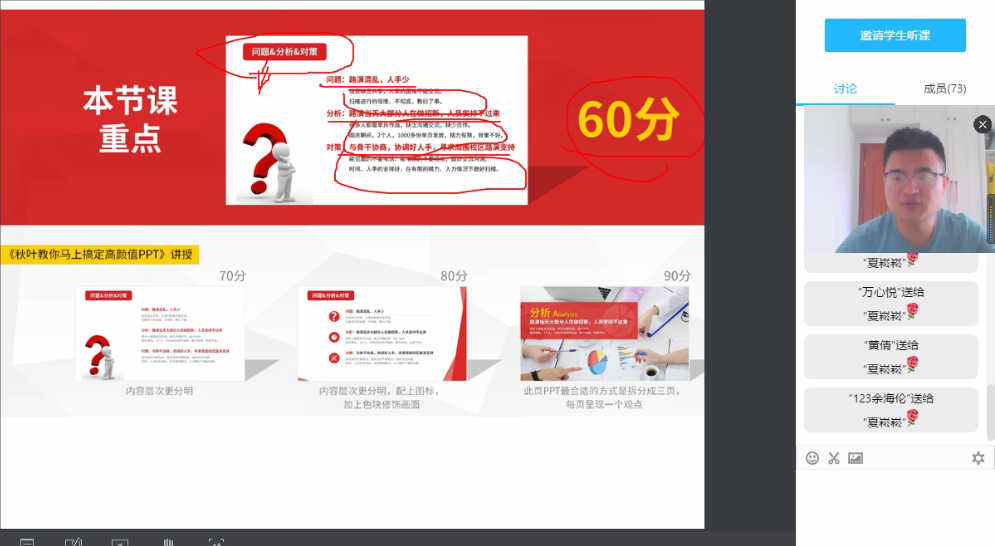 线上授课对于我们教师来说都是一个新的尝试。这要求我们老师能作为一个新生代主播能在45分钟的课堂里抓住学生兴趣点,并且把知识点跟学生全面讲解。为了吸引学生,我在每节课前做了很多功课;有很多学生在上课的时候,不仅能够学得非常认真,而且他们在课下也经常在教学软件里面向我提问。