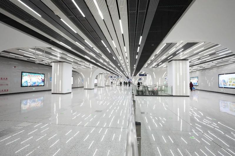 5号线是武汉市首条全自动运行地铁线路,全线列车从唤醒检查、进入正线、结束运营返回段场休眠,全过程无需人工操作。车头取消传统驾驶室,改成敞亮的观景玻璃,乘客可以直接看到隧道内景,体验全速穿梭“时空隧道”的感觉。