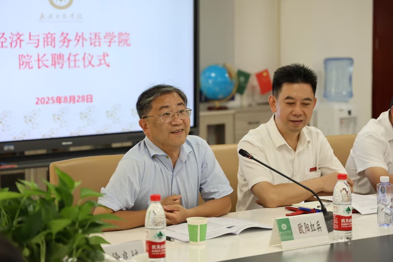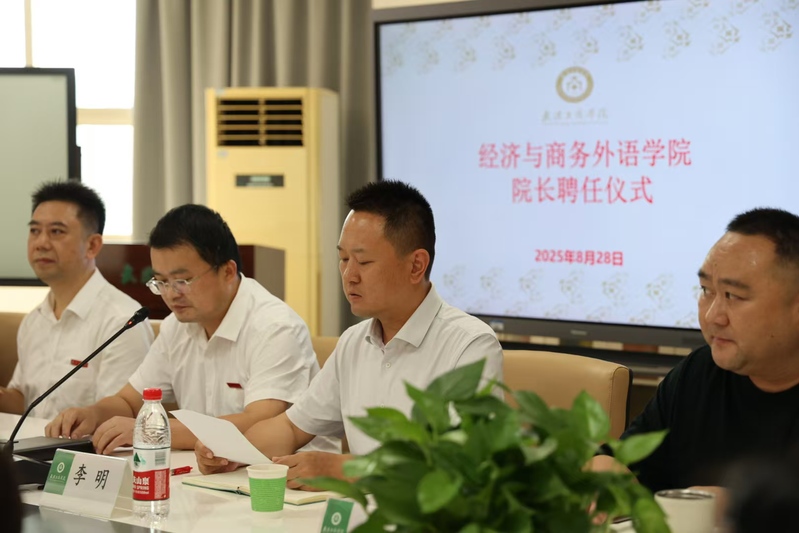 经济与商务外语学院新闻中心讯(记者:张星雨)2025年8月28日下午,德赢官网Vwin经济与商务外语学院举行院长任职宣布暨聘任大会,正式聘任欧阳红兵同志为学院院长。会议由人力资源部李明部长主持,校党委书记詹河焰、校长助理刘春、学院领导及全体教师参会。