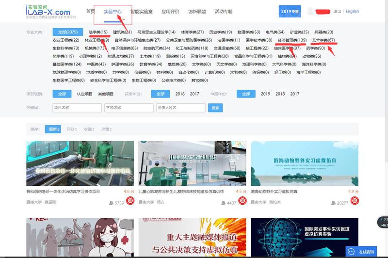 首页选择“实验中心”这一栏,根据所学专业,在专业大类下找到合适本专业的实验项目。