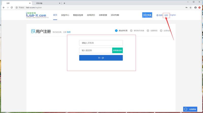 登陆自主实验平台:实验空间(http://www.ilab-x.com/)