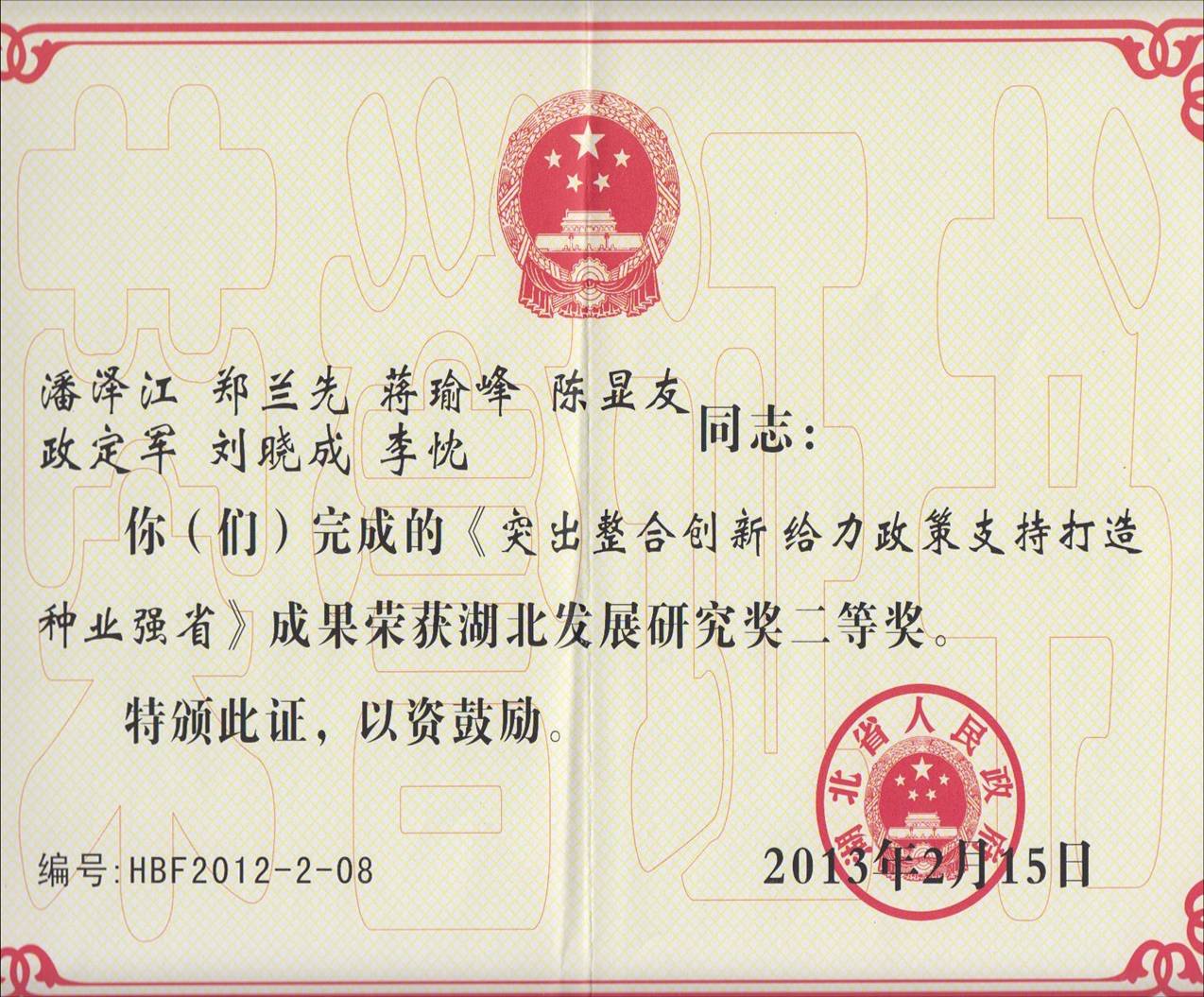 湖北省发展研究二等奖