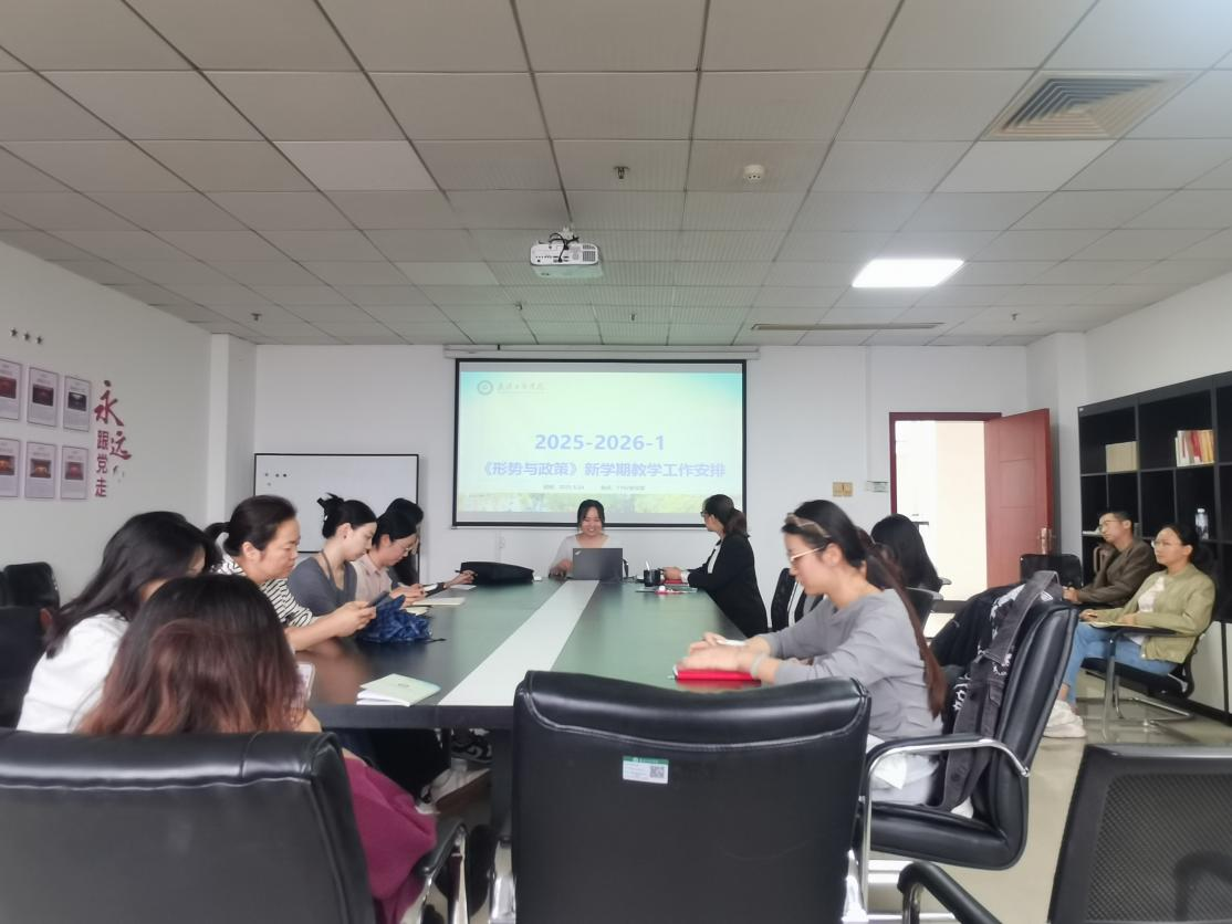 (通讯员 董荟楠)2025年9月24日,马克思主义学院“形势与政策”教研室在1102会议室成功召开新学期教学工作安排会议。本次会议旨在明确各院系辅导员与思政课教师工作重点,为新学期教学有序开展奠定基础。会议由教研室主任董荟楠老师主持,教研室全体教师及各院系辅导员参加。