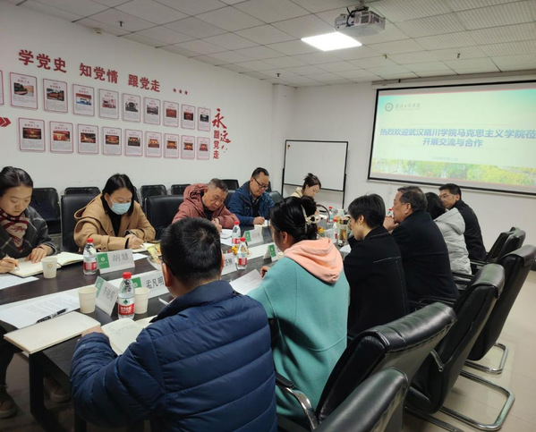 张院长对晴川学院交流团队的到来表示热烈欢迎,并详细介绍了我校马院的发展概况。我校马院自成立以来,始终坚守马克思主义理论教育主阵地,以“立德树人”为根本任务,构建了比较完整的人才培养体系,在思想政治理论课教学改革、马克思主义理论学科建设等方面成效显著。