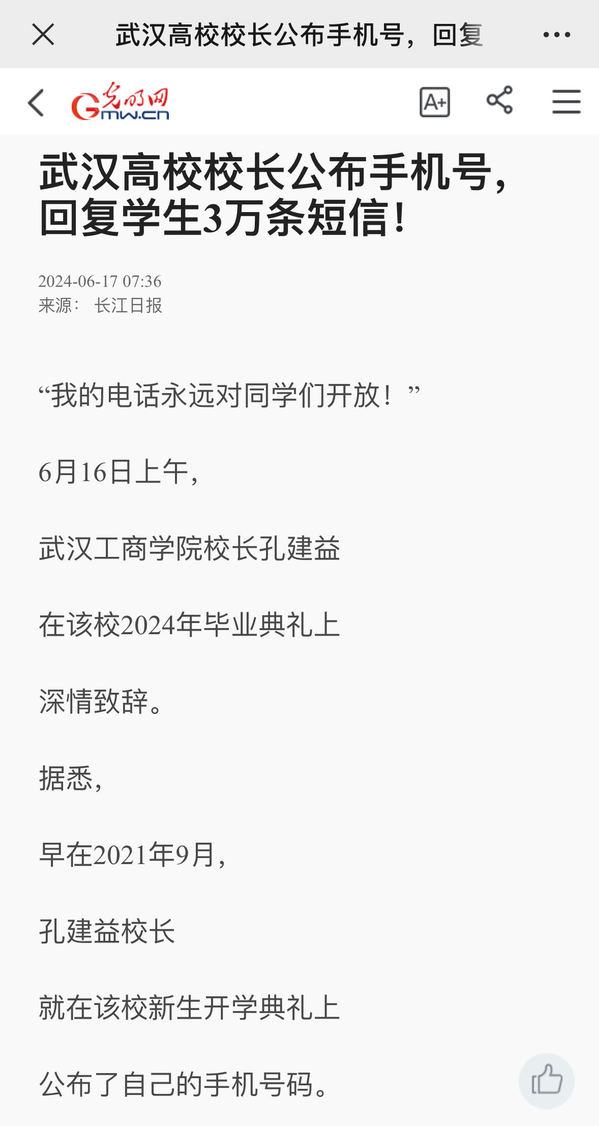 学生给校长发的短信及校长和相关工作人员的短信回复截图。