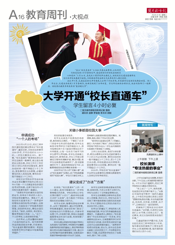 楚天都市报:大学开通“校长直通车”,学生留言四小时必复